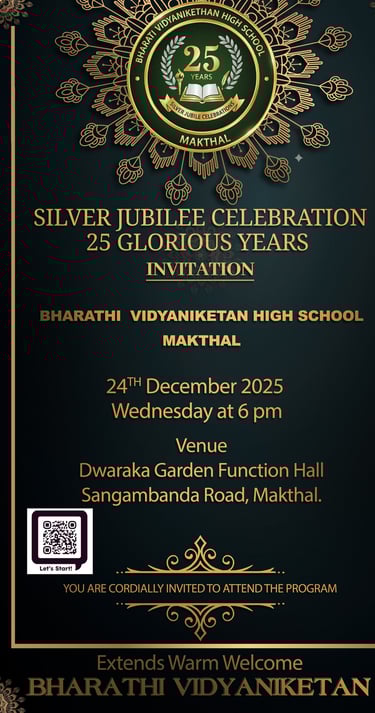 Bharathi Vidyanikethan High School has been the first English Medium School in Makthal for 25 Years. We believe that student’s success is based on the value of hard work, which is strong emotion for learning, courtesy and a smart appearance.
